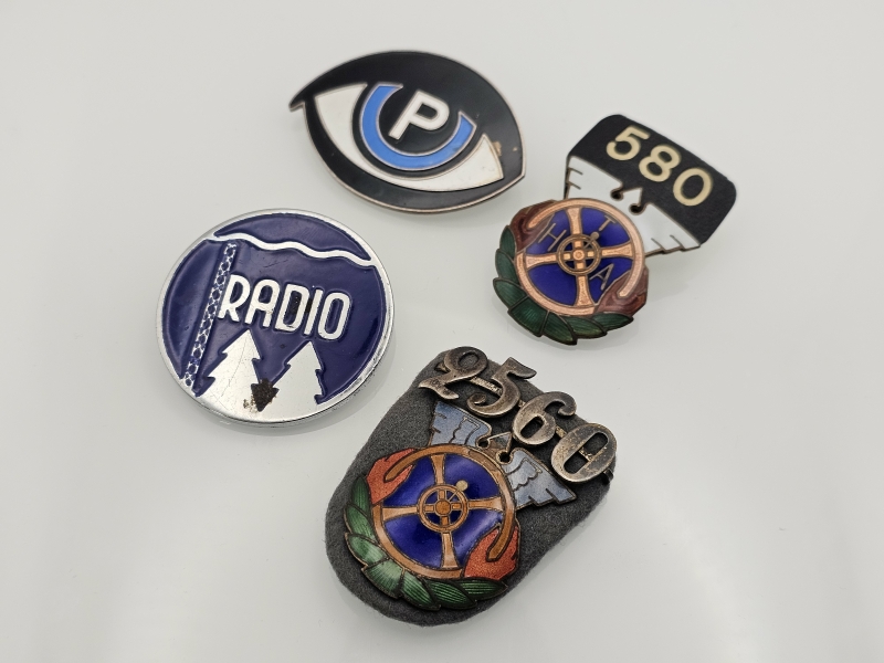 #1779 4kpl vanhoja merkkejä joista 2kpl taksiautoilijoiden merkkejä