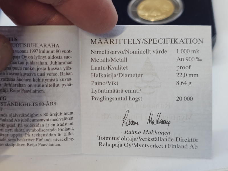 #1627 Kultakolikko: Itsenäisyyden 80v juhlaraha, 8,64g