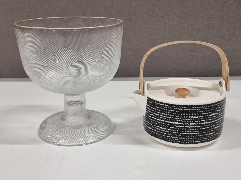 #87 Heikki Orvola, iso Miranda malja + Marimekko Oiva Siirtolapuutarha teekannu