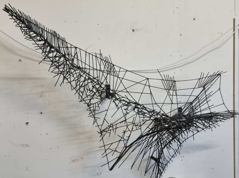 #863 Metallinen design seinätaideteos. Merita -pankin taidesäätiöltä ostettu, tehty ennen 1980-lukua. Ollut pankin seinällä.
