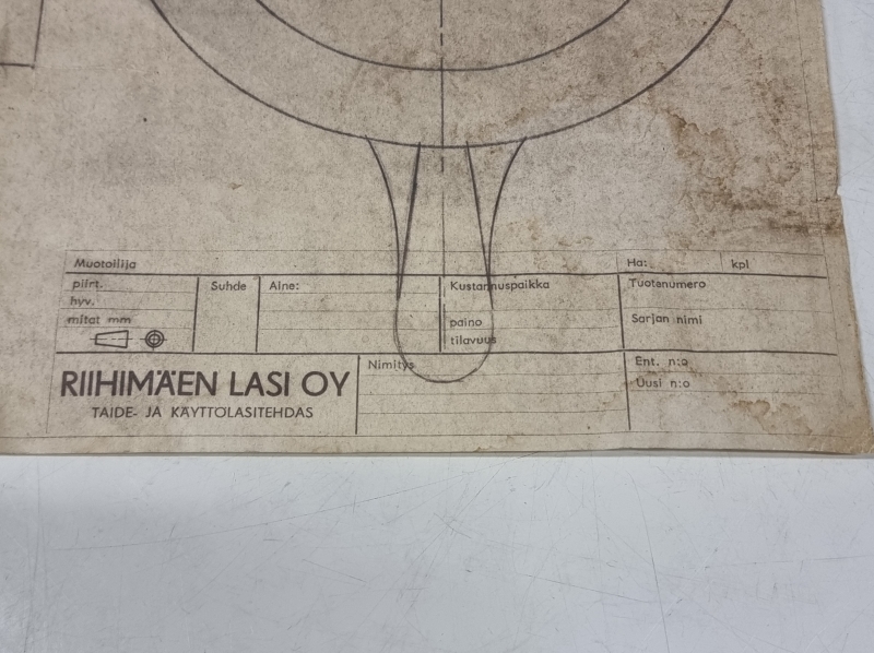 #123 Nanny Still, Riihimäen lasi, alkuperäinen mallipiirros "Jäävesikaadin" 1974