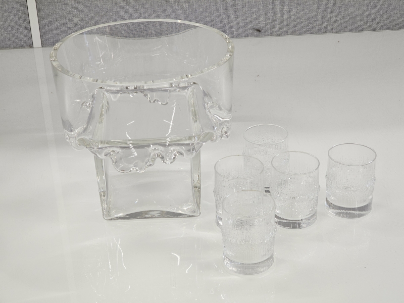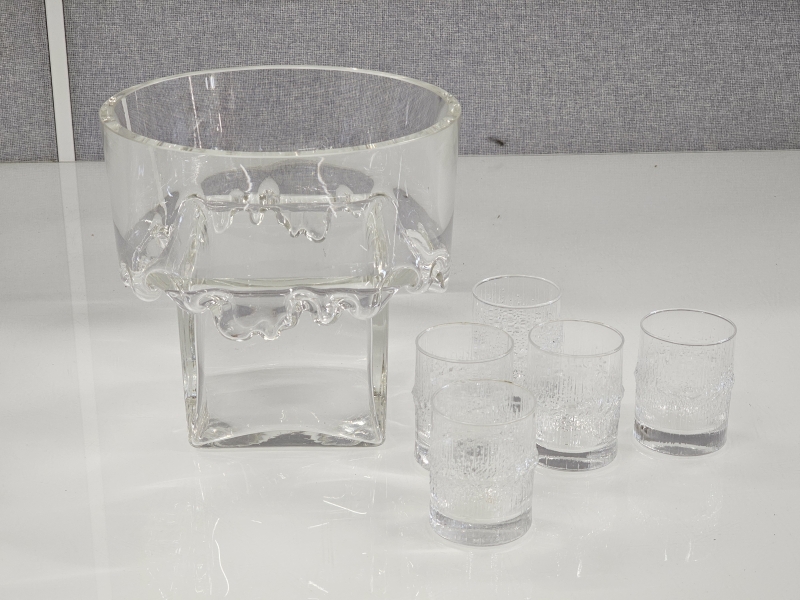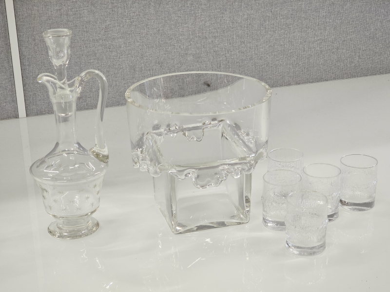 #127 Nuutajärvi malja + Wirkkala Niva 5kpl + tähtihiontainen karahvi