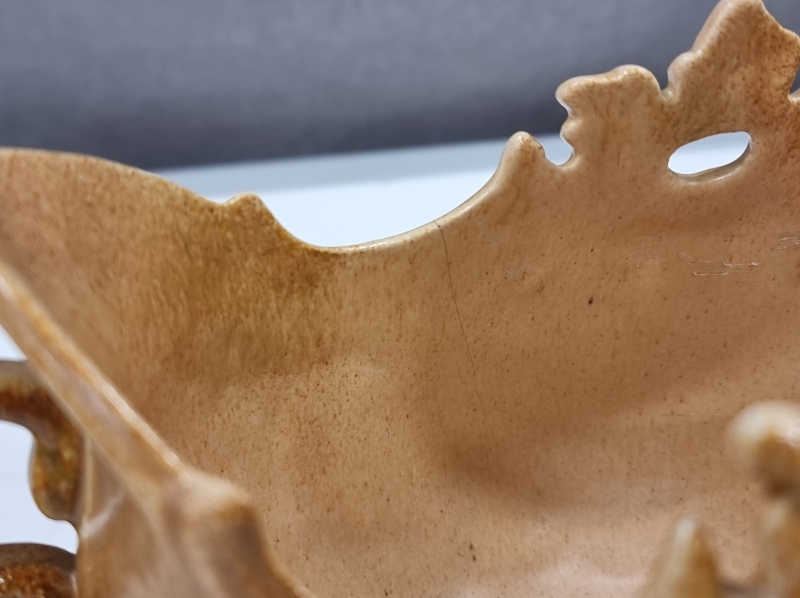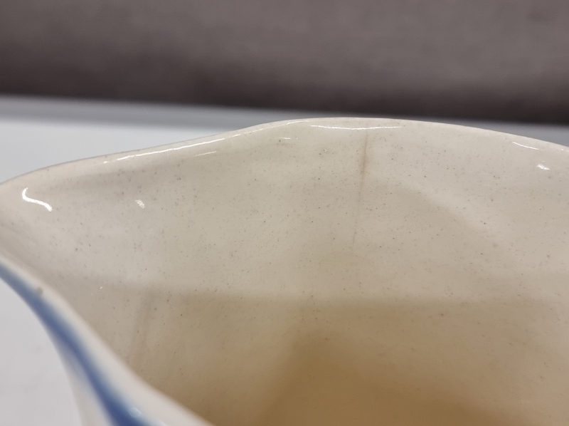 Karjalan pohjassa pala pois, Astor hiushalkeama. Lankamaljassa halkeama. Maljan leveys 25cm.