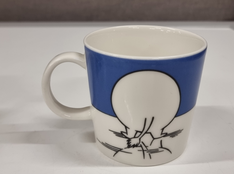 #687 2kpl Muumimukeja "Delfiinisukellus" ja "Muumipeikko jäällä"