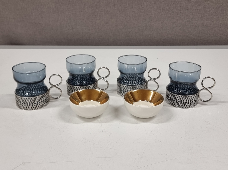 #243 - 4kpl Tsaikka laseja + 2kpl Arabia kynttilänjalkoja
