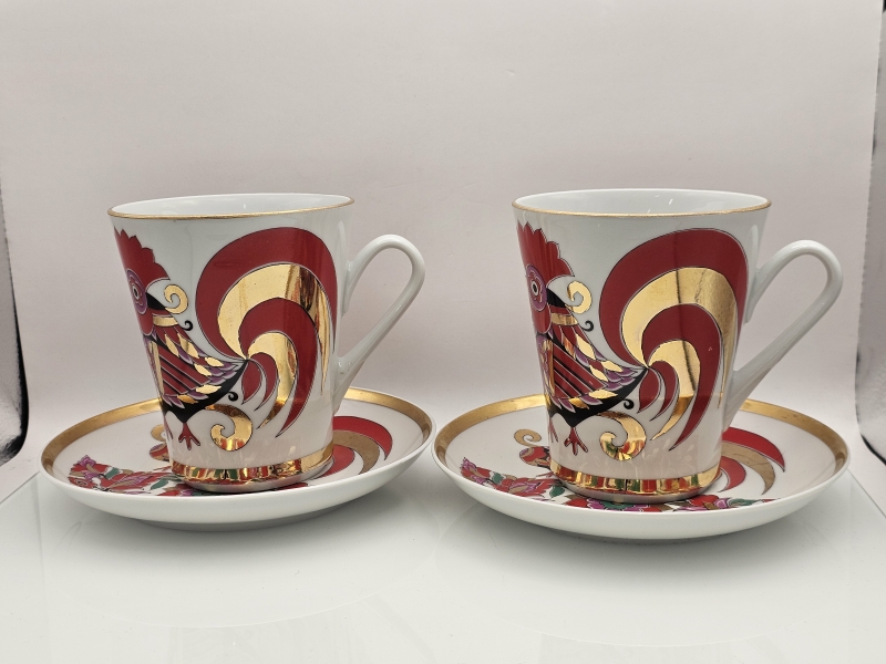 #760 - 2kpl Lomonosov Red Rooster -kuppeja ja tasseja