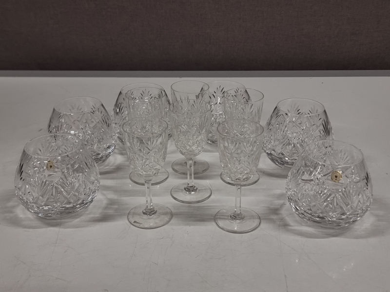 #245 6 + 6kpl Riihimäen Lasi kristallilaseja, mm. Yrjö