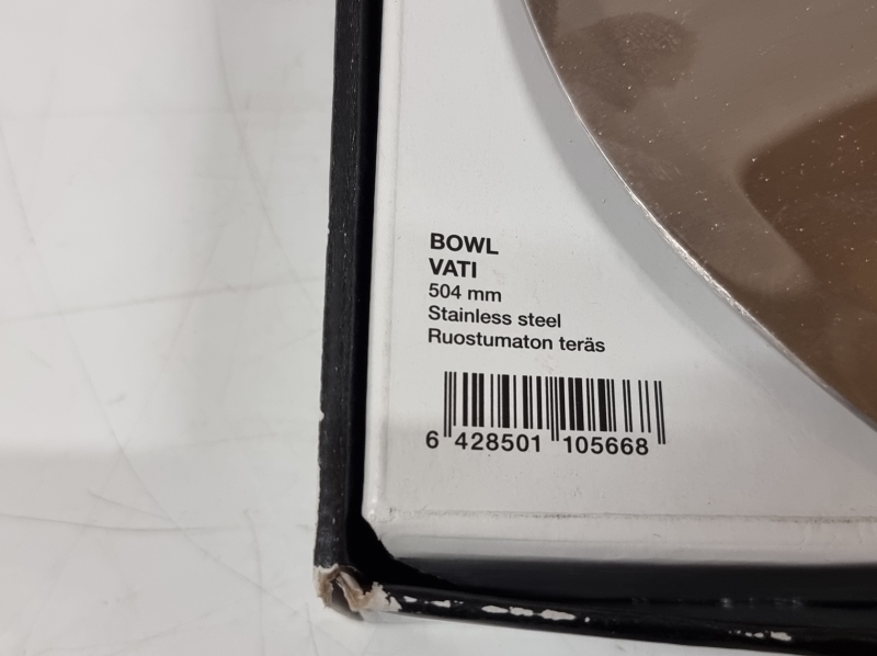 #919 - Alvar Aalto, teräsvati 50cm paketissaan + puhdistusliina
