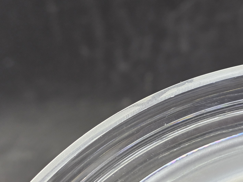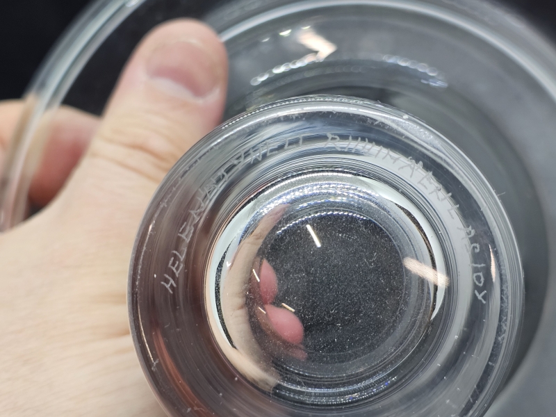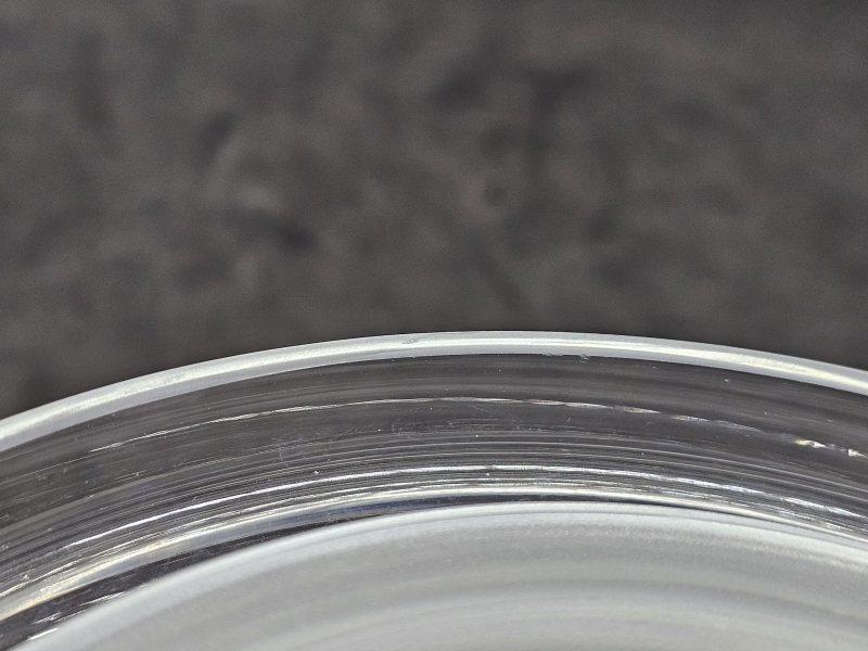 Pienenpientä kynnellä tuntuvaa karheutta reunassa. Sign. H: 16cm, k: 9,3cm