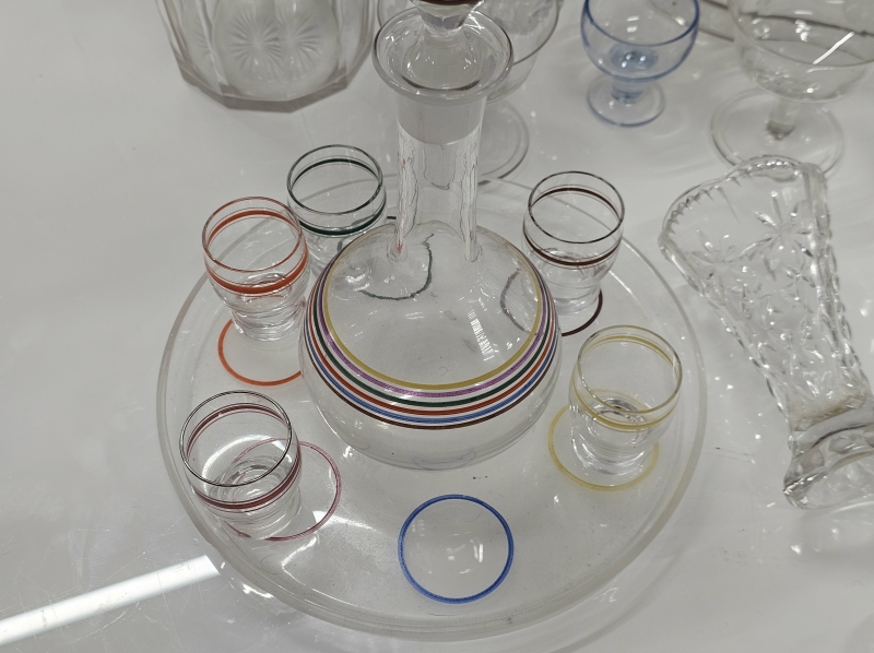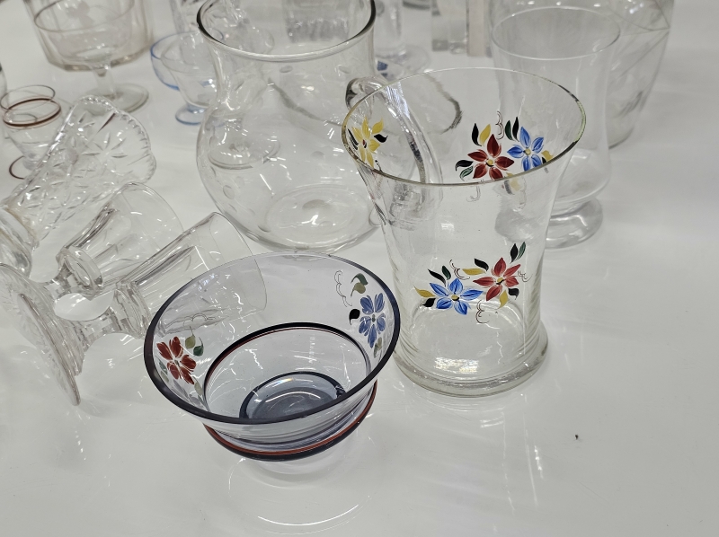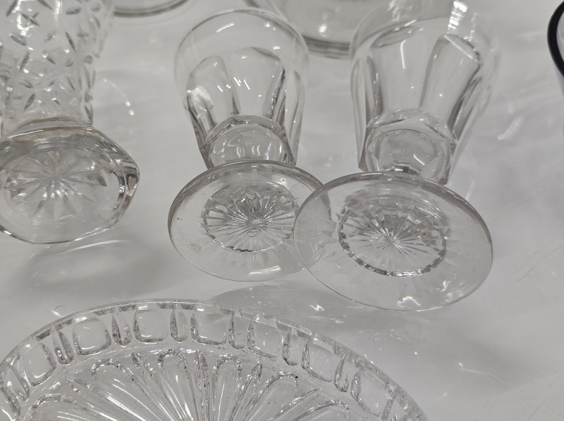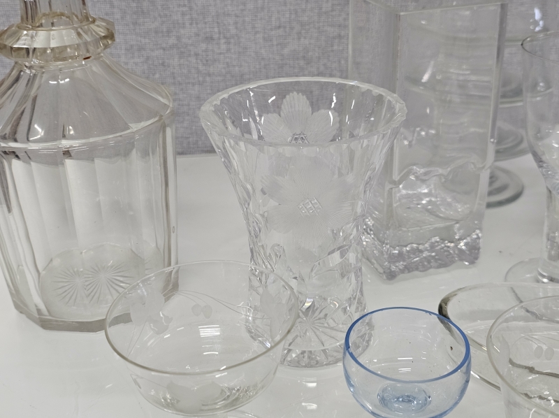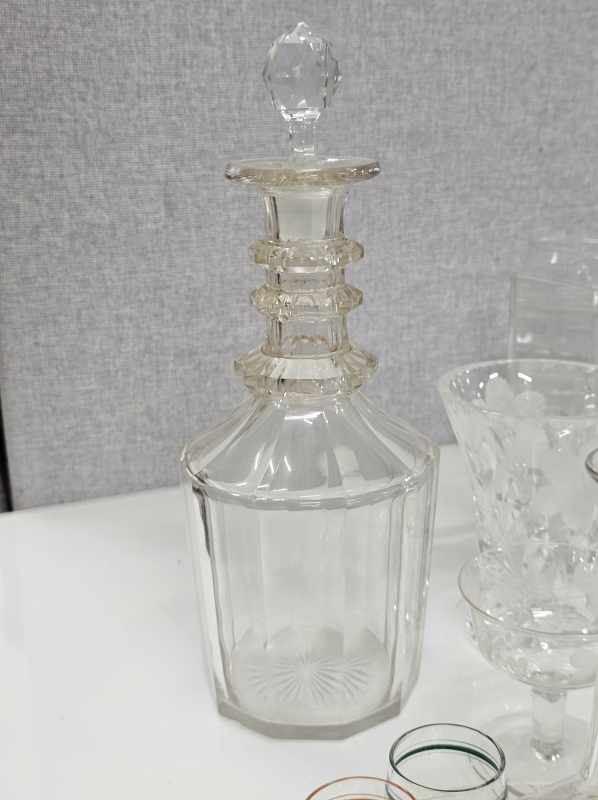 Mm. kaadetut vanhat lasit etualalla ehjät. Joissakin vain pieni kolhu, osasta pala pois