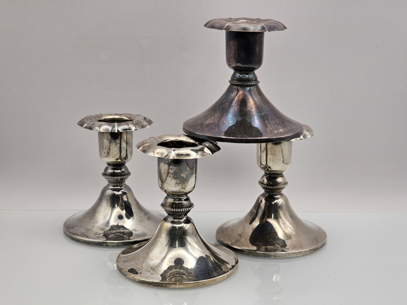 #1028 4kpl hopeisia kynttilänjalkoja, bruttopaino 378g