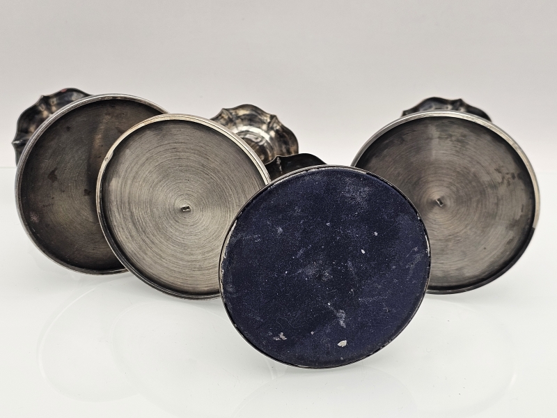#1028 - 4kpl hopeisia kynttilänjalkoja, bruttopaino 378g