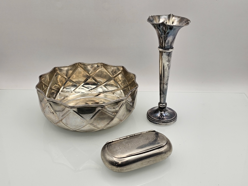 #1030 Hopeaa: Maljakko [813], rasia [830] ja malja [925], 160g