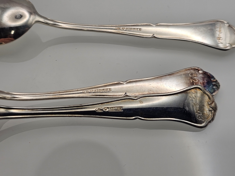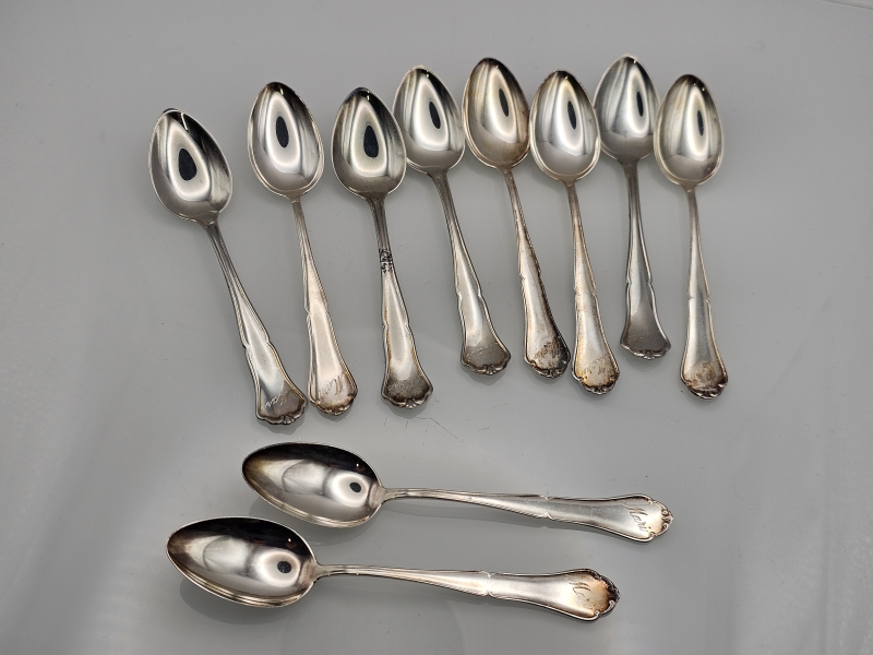 #1033 10kpl hopeisia chippendale kahvilusikoita, 830h, 124g