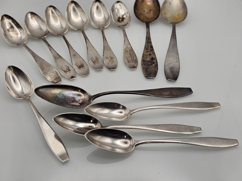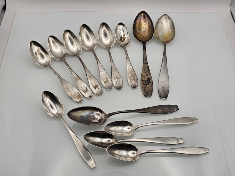 #1043 - Erä hopeisia lusikoita, 813h, 184g