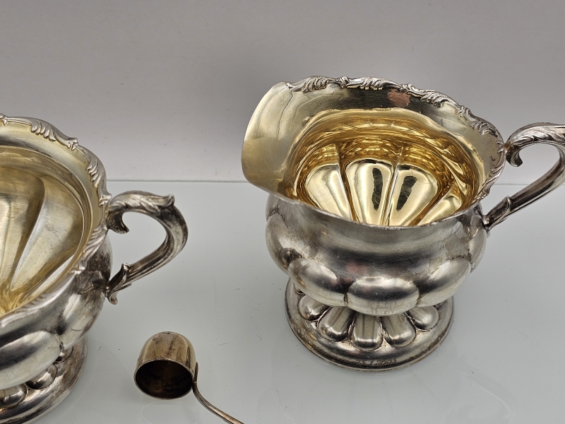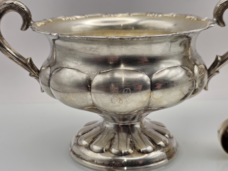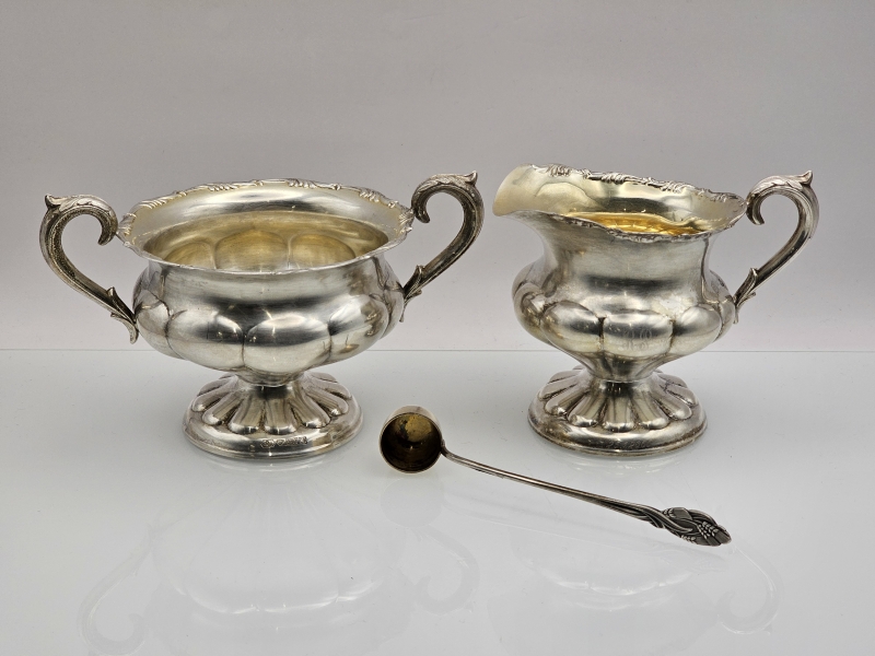 #1045 - Hopeinen sokerikko ja kermakko + sokerilusikka, 813-830h, 203g
