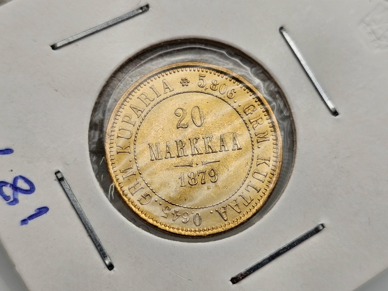 #1054 - Kultakolikko: 20 mk vuodelta 1879, 6,45g