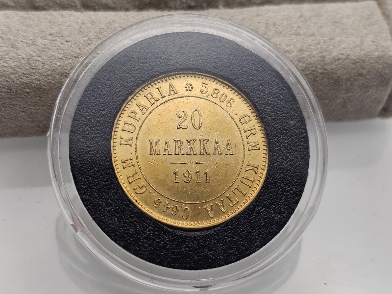 #1056 Kultakolikko: 20 mk vuodelta 1911, 6,45g
