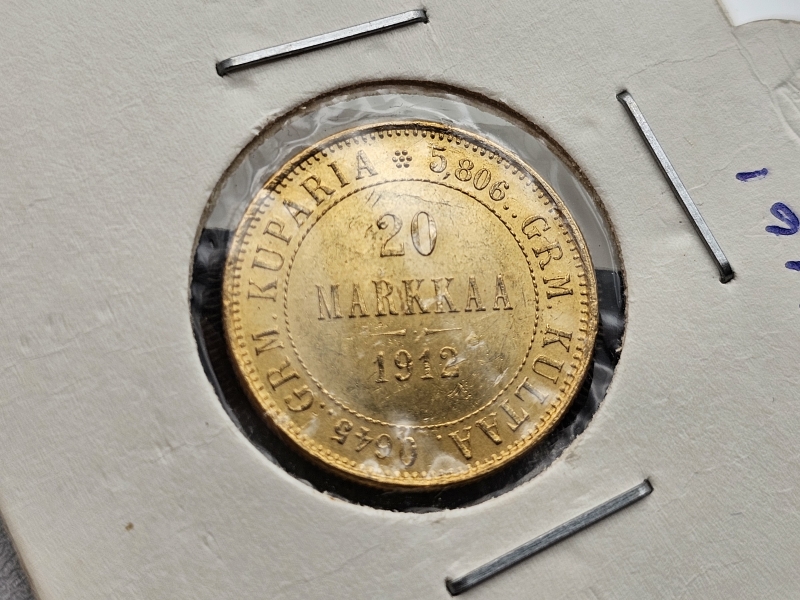 #1200 Kultakolikko: 20 mk vuodelta 1912 s, 6,45g