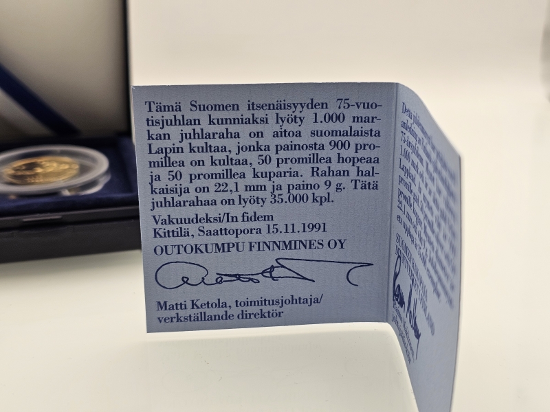 #1202 Kultakolikko: 1000mk Itsenäisyyden 75v juhlaraha, 9g