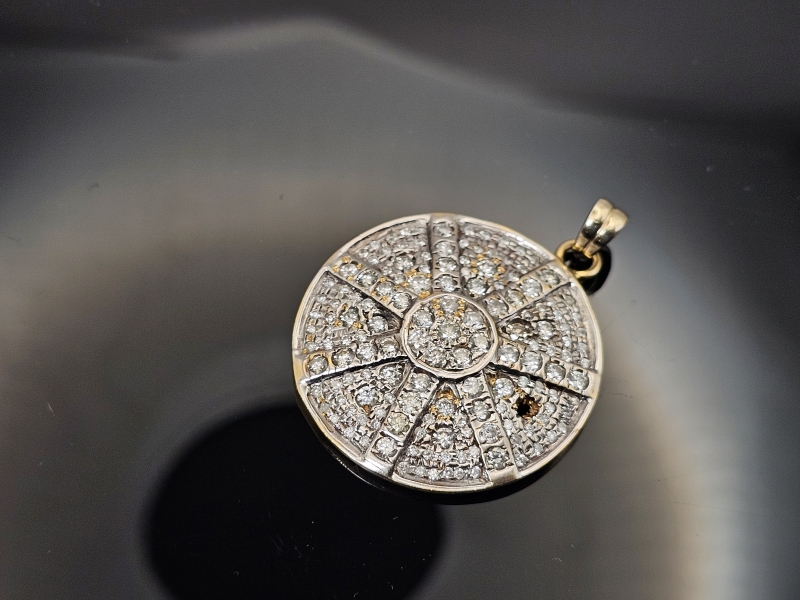 #1065 14k kultainen riipus jossa 149kpl timantteja [yht. 3,54ct], 18,67g *TIEDOT TARKENTUVAT*