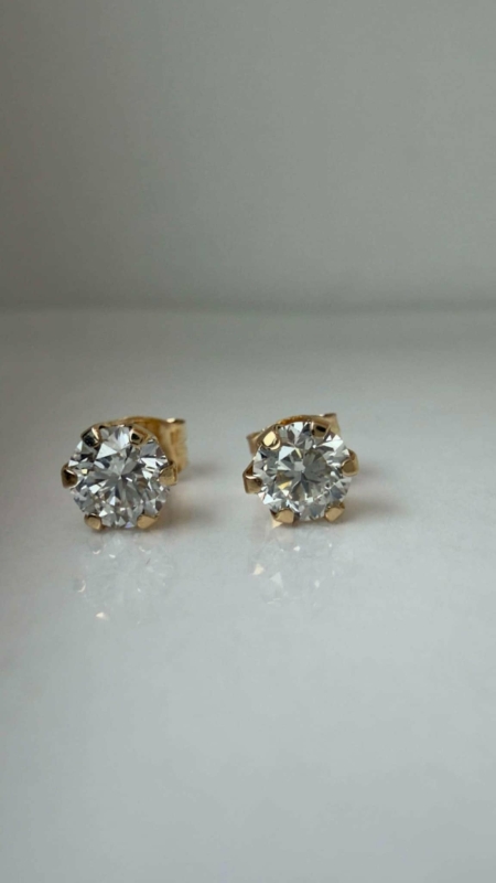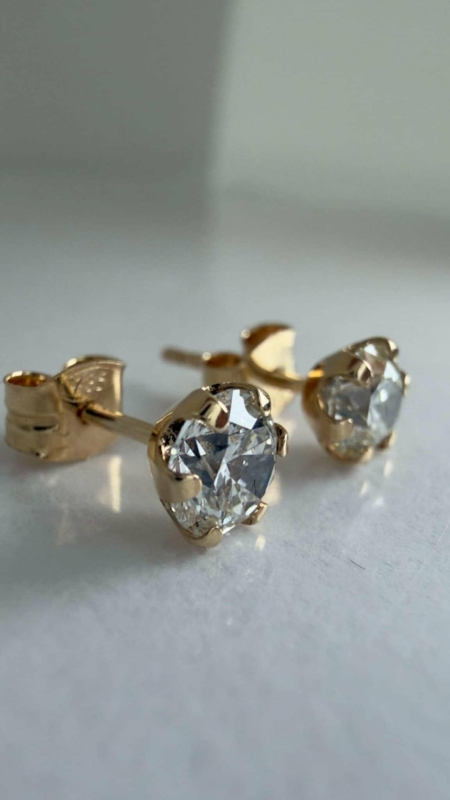 #1040 14k kultaiset korvakorut joissa 0,41ct H / VVS2 ja 0,40ct G / VVS2 timantit, 0,65g
