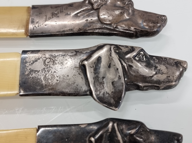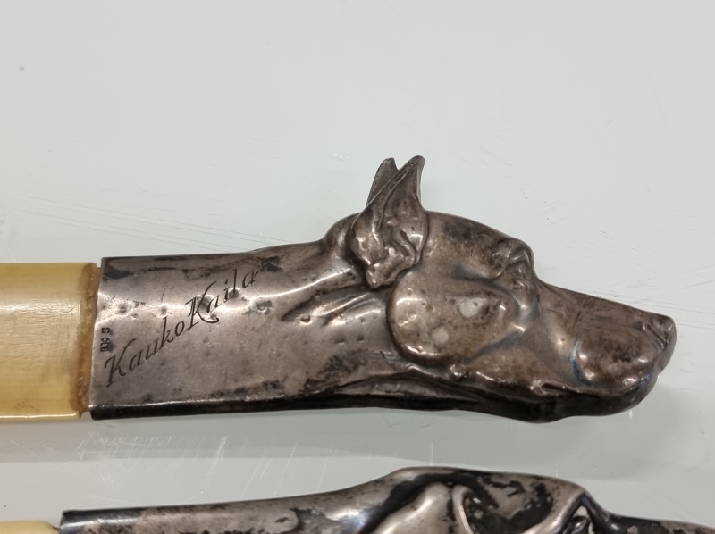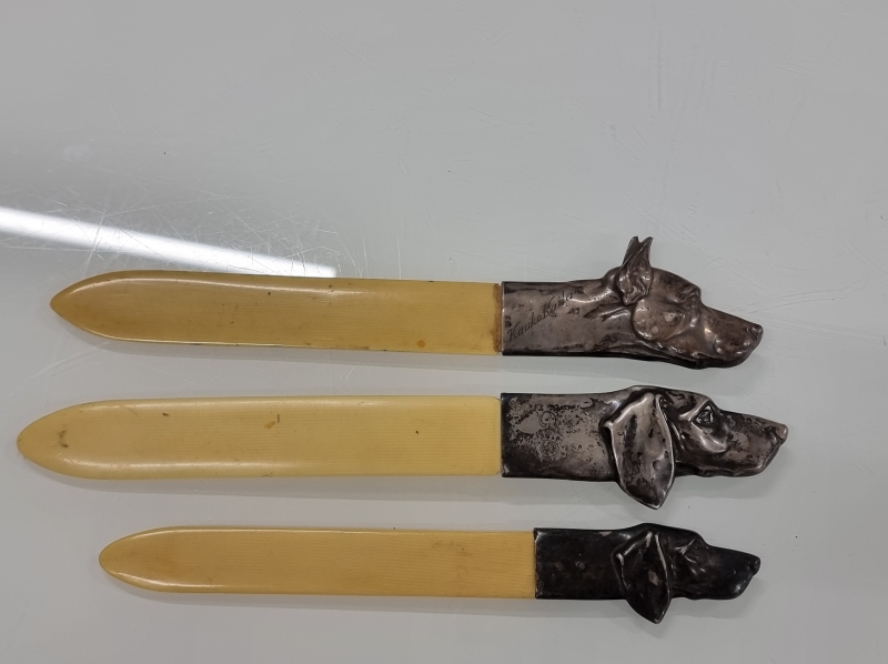 #1658 - 3kpl koiranpää -paperiveitsiä hopeaosilla