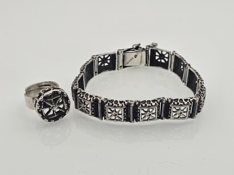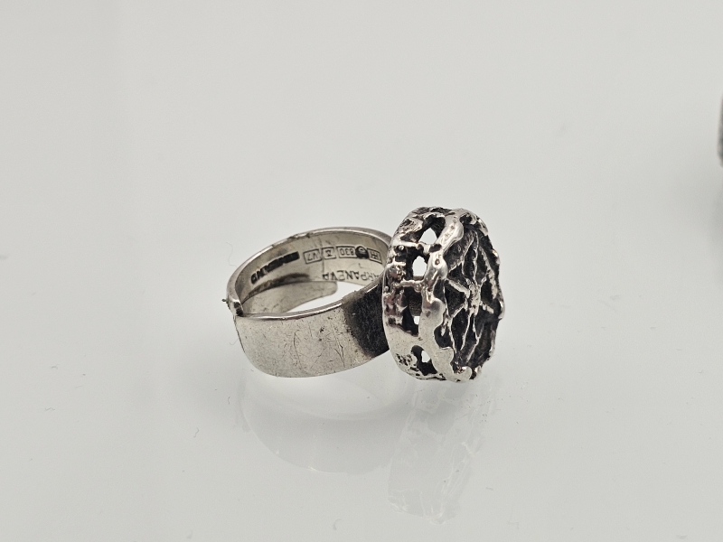 #1094 Pentti Sarpaneva hopeinen sormus ja rannekoru