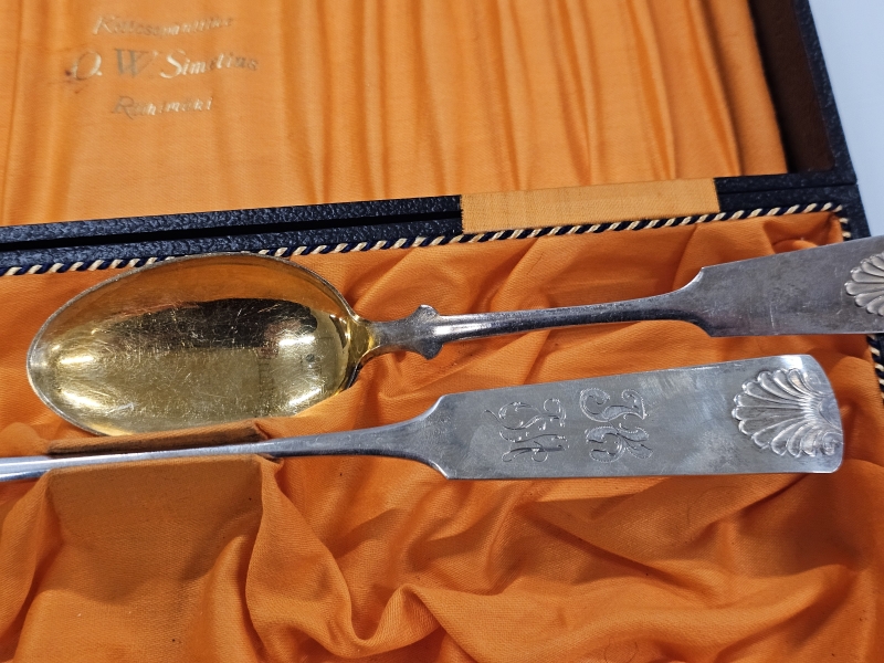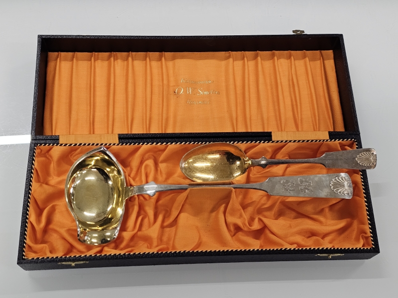 #1119 - Hopeinen iso musla lusikka ja kauha, 813h, 206g