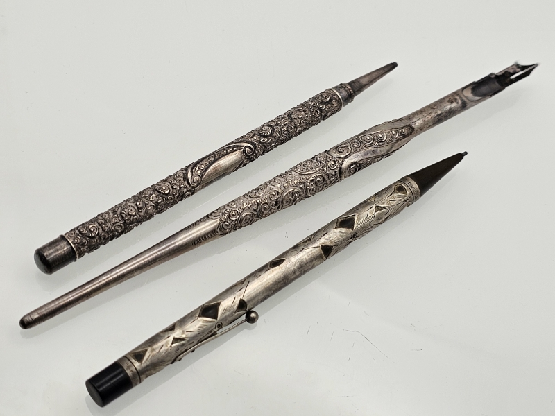 #1135 3kpl vanhoja hopeisia kyniä, sterling-hopeaa, br. 48g