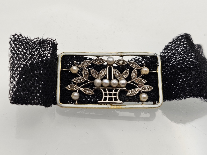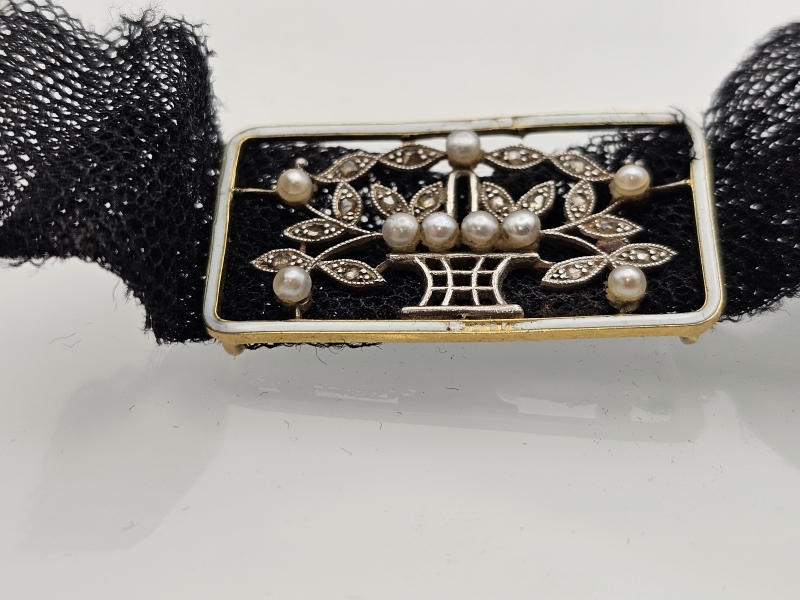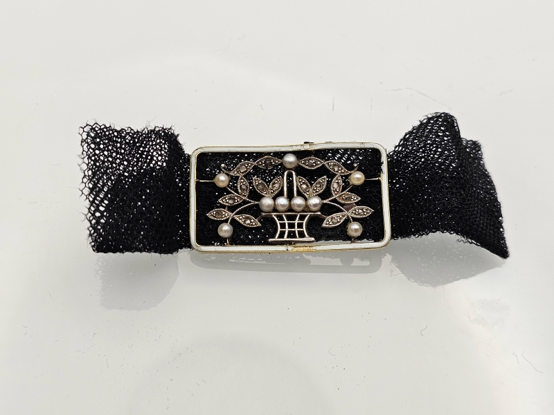 #1138 Rintakoru 18k kultaa, platinaa, timantteja ja helmiä, mahdollisesti Tiffany & co., br. 3,98g