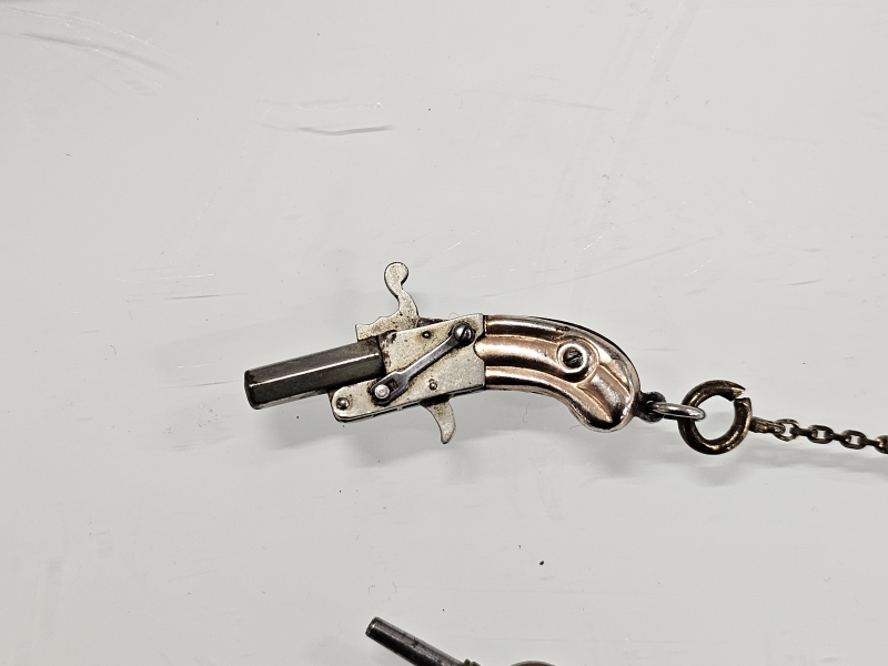 #1149 - Erä tavaraa: Mm. minipistooli toimivalla mekanismilla, Coronation 1953 linkkuveitsi