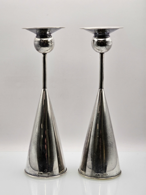 #1155 - 2kpl hopeisia Kaj Blomqvist kynttilänjalkoja, 916h, br. 522g