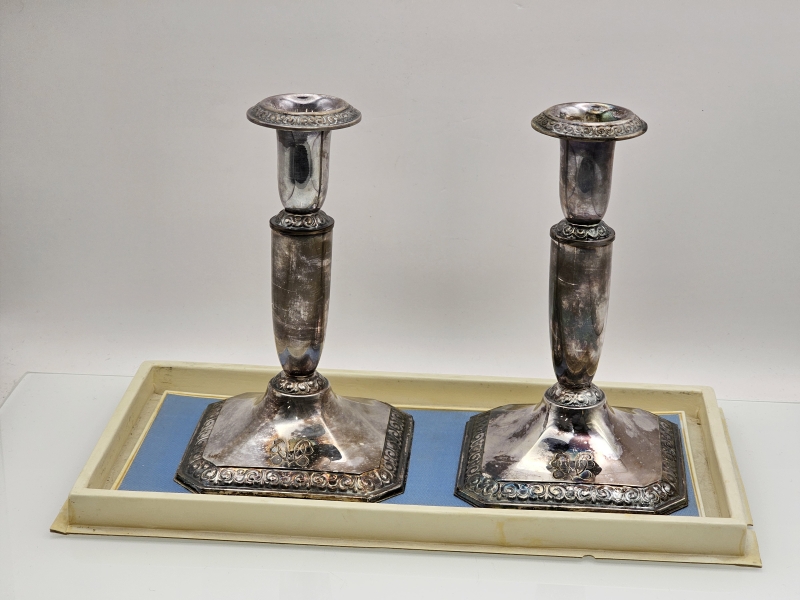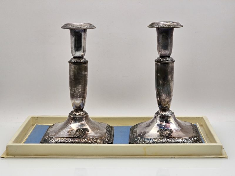 #1156 - 2kpl hopeisia kynttilänjalkoja, 830h, br. 312g