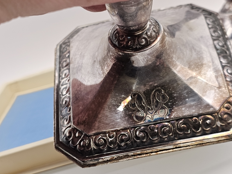 #1156 2kpl hopeisia kynttilänjalkoja, 830h, br. 312g