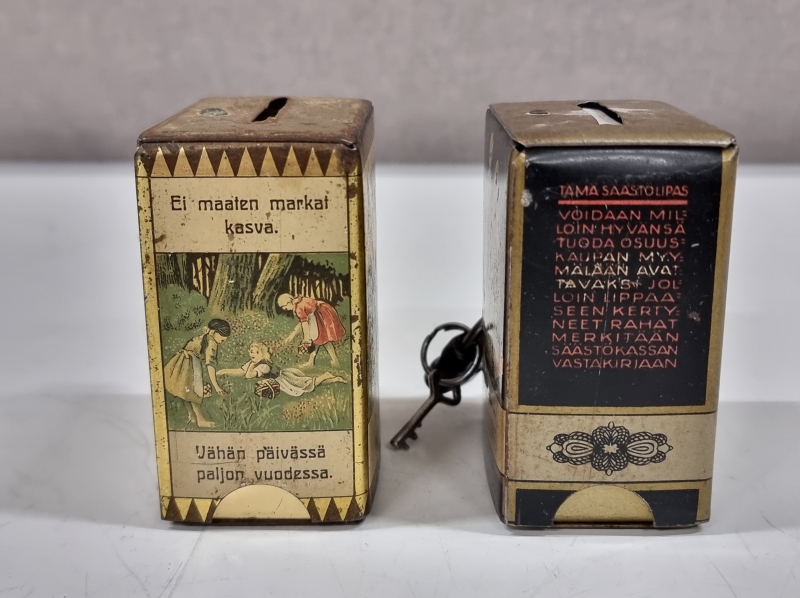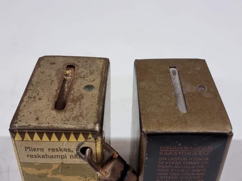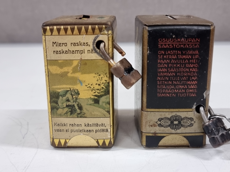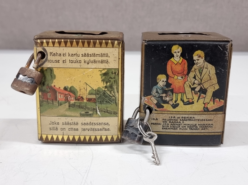 #2012 - 2kpl vanhoja säästölippaita valmistaja G.W. Sohlberg Ab
