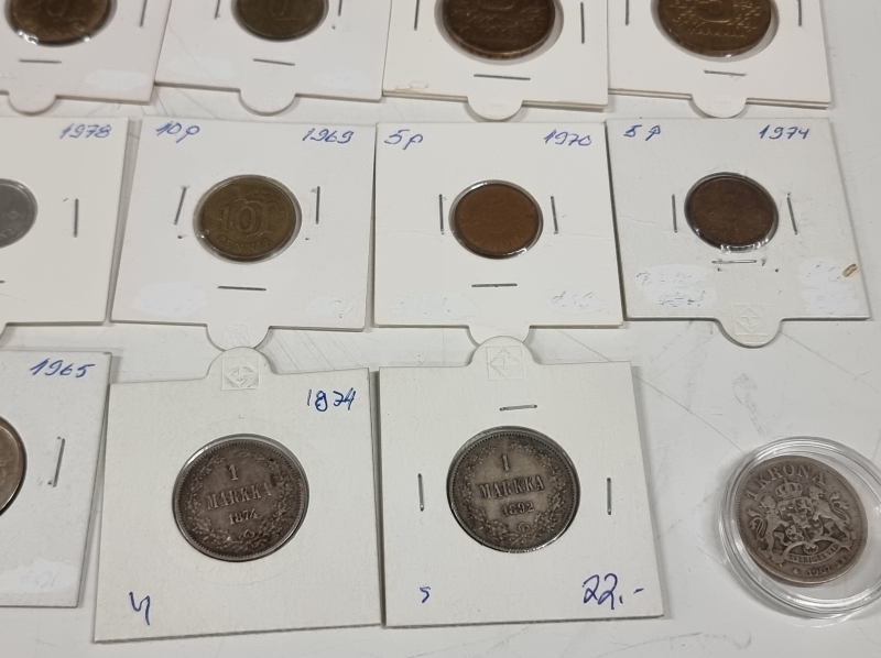 #2013 - Erä kolikoita: Mm hopeamarkat v. 1874, 1892
