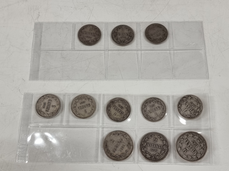 #2013 Erä kolikoita: Mm hopeamarkat v. 1874, 1892