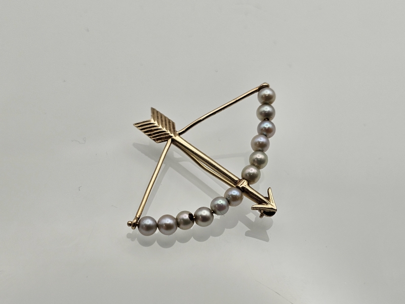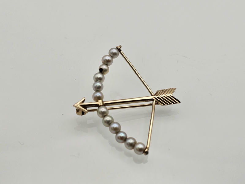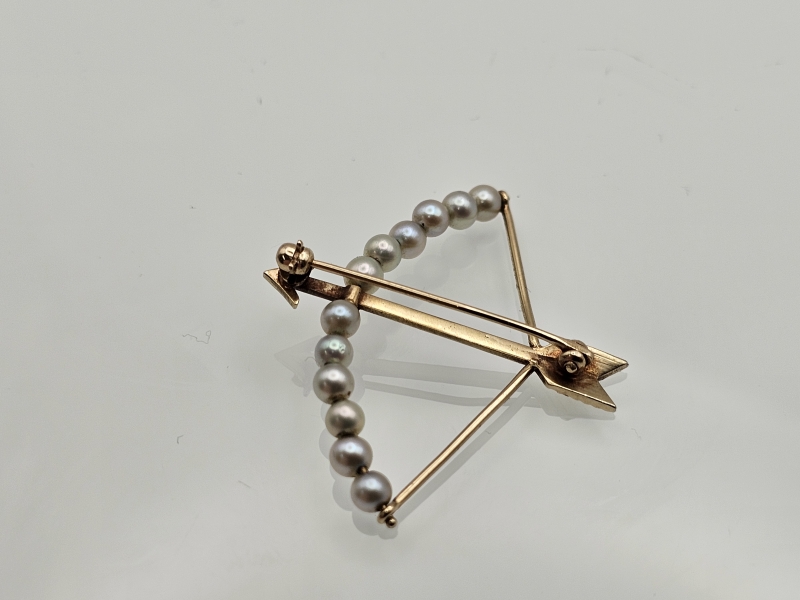 #1177 14k kultainen rintaneula helmillä, 2,95g