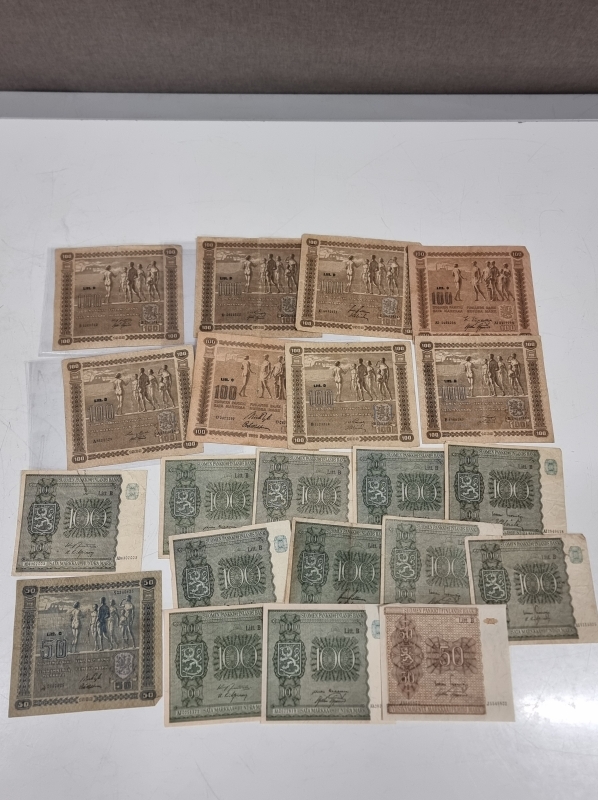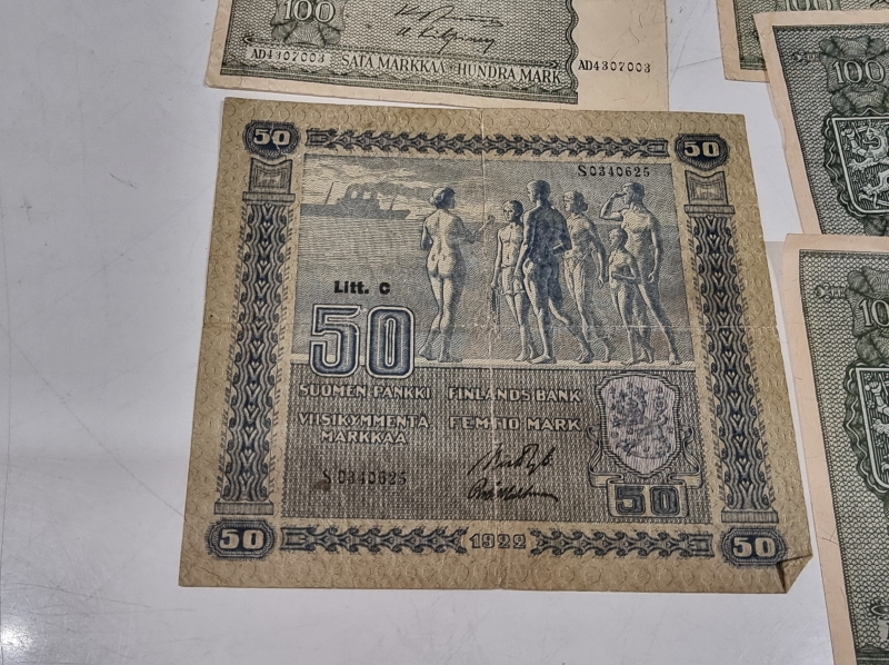 #2021 - 50 mk ja 100 mk seteleitä v.1939 ja 1945
