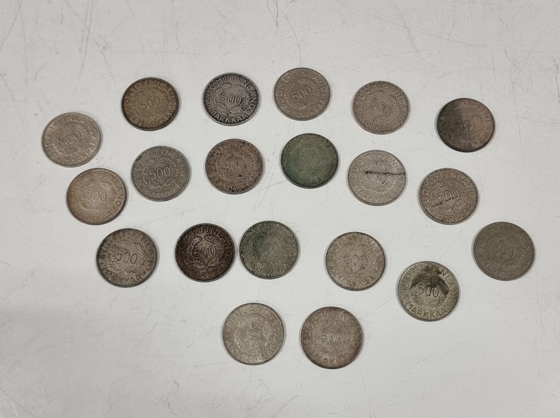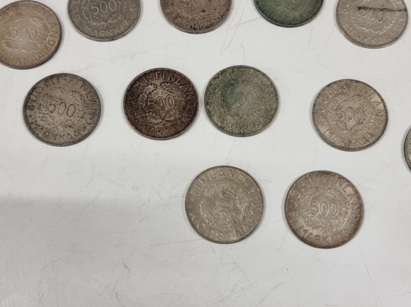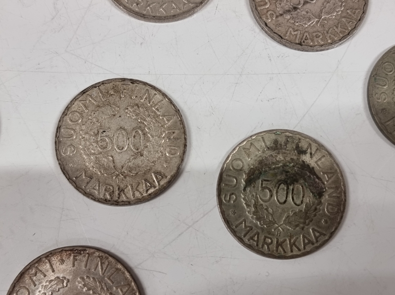 #1210 20kpl Helsingin olympialaisten hopeisia juhlarahoja v. 1952. 500h, 240g