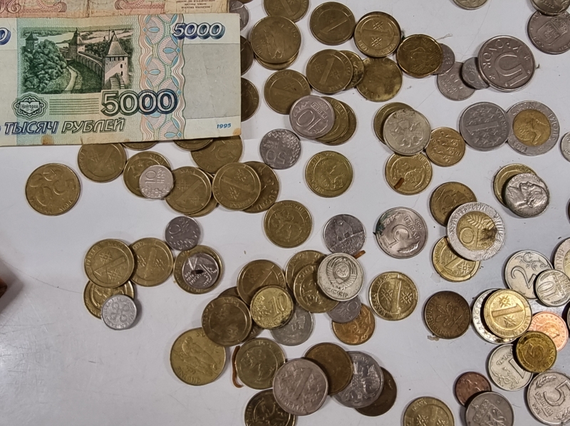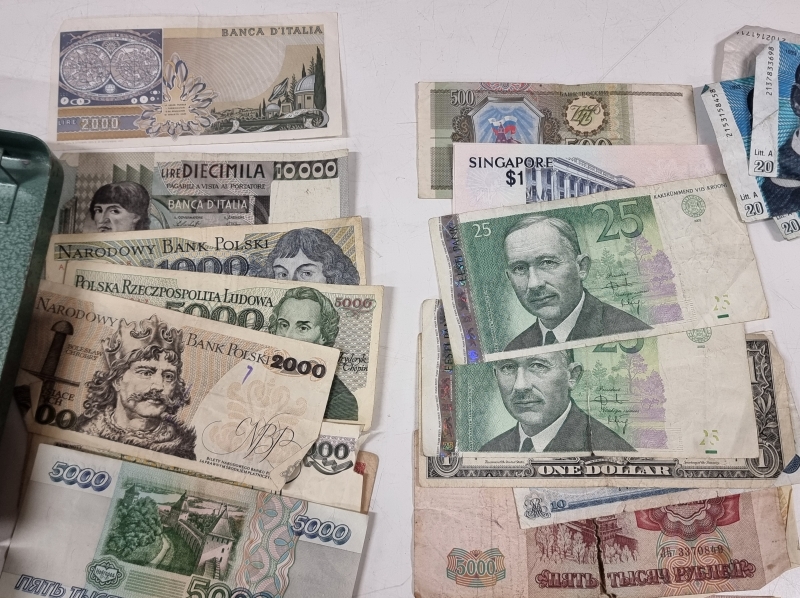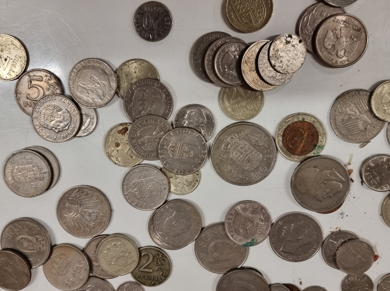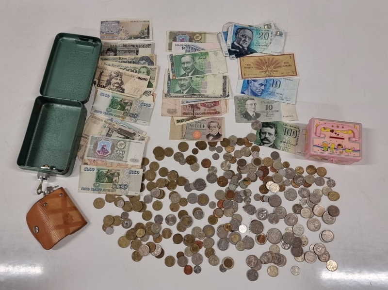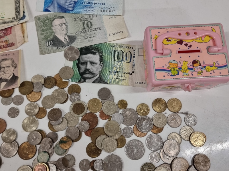 #2024 - Erä kolikoita ja seteleitä + kassalipas