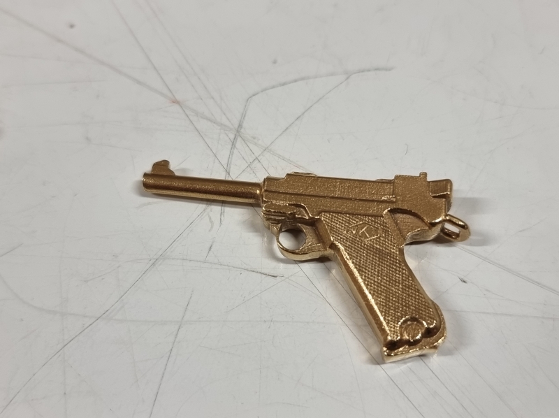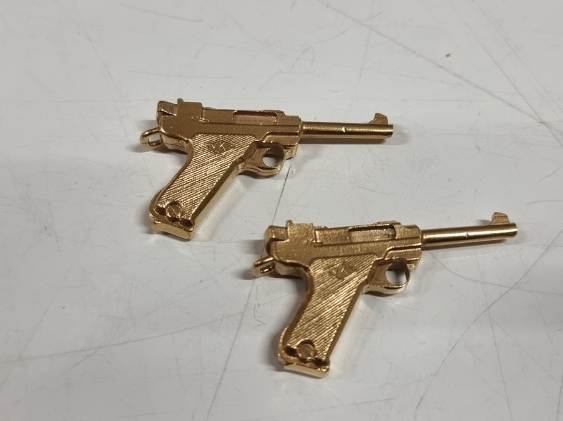 #1691 - 2kpl hopeisia Lahti -pistooli riipuksia 925h, 26g