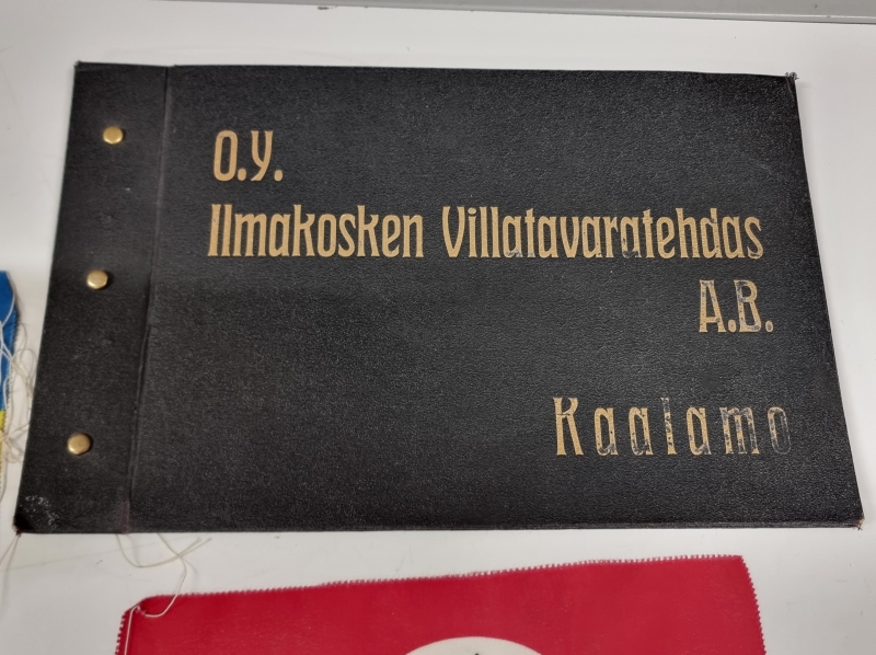 #1696 Ilmakosken Villatavaratehtaan tuote-edustajan lippujen mallikappaleet 1930-luvulta