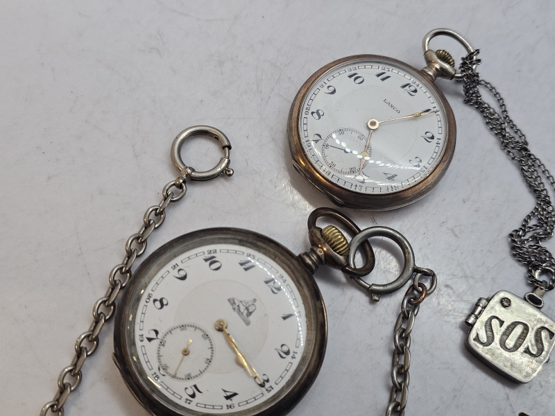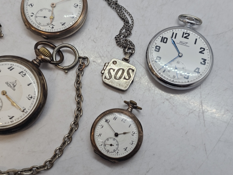 #1218 - 4kpl taskukelloja joista 3kpl hopeisia, mm. Lanco, Tissot ym.