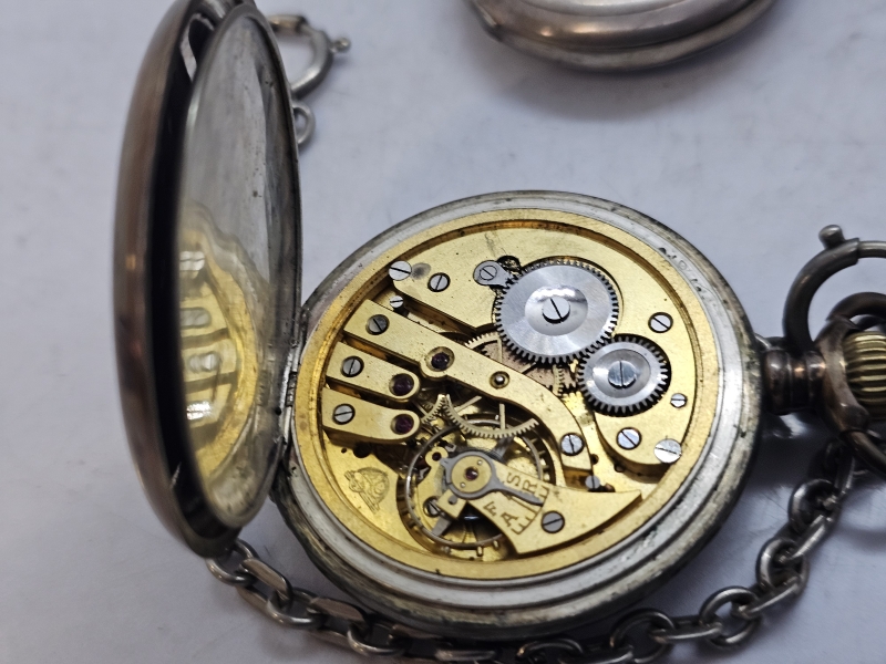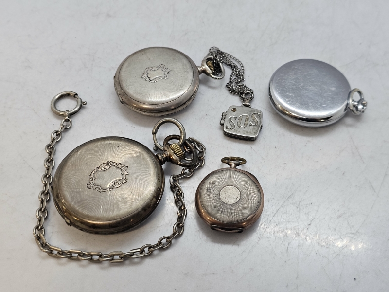 #1218 4kpl taskukelloja joista 3kpl hopeisia, mm. Lanco, Tissot ym.