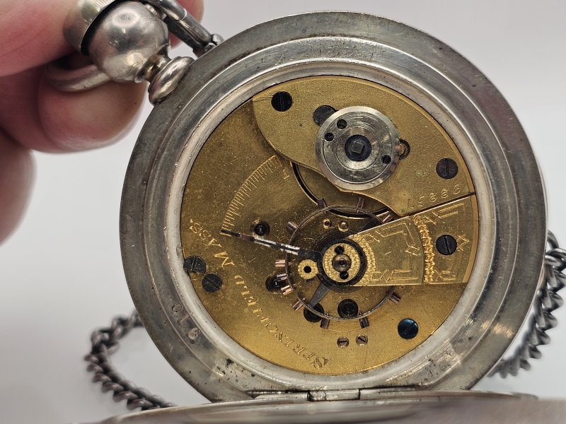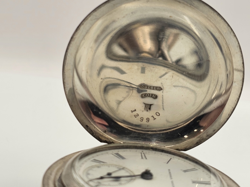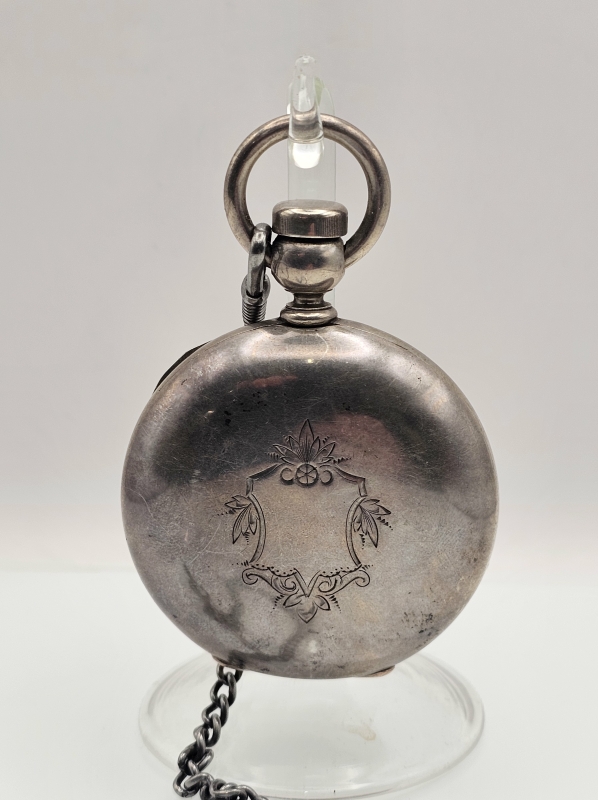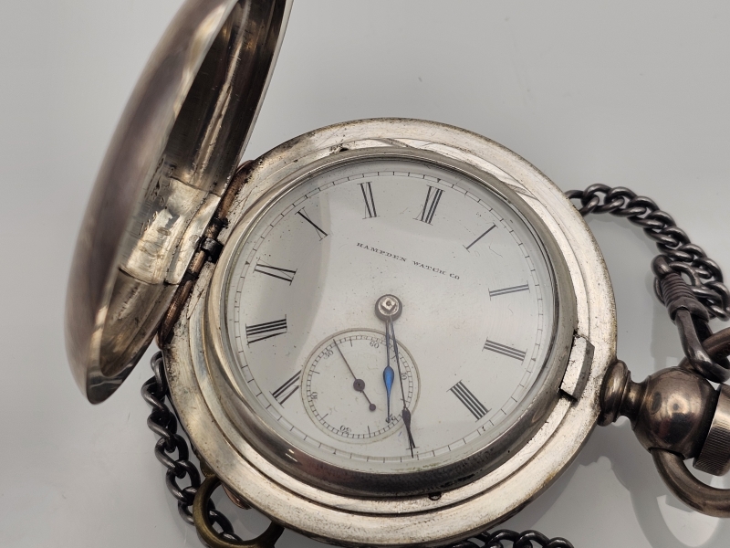 #1221 Taskukello: Hopeinen Hampden Watch co. vuodelta 1878