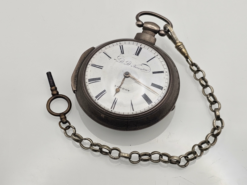 #1222 - Taskukello: Hopeinen D.D.Neveren, 1700-luvun loppu