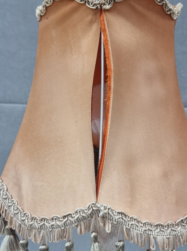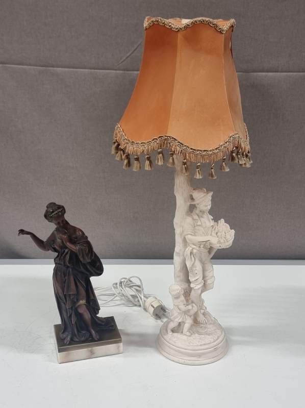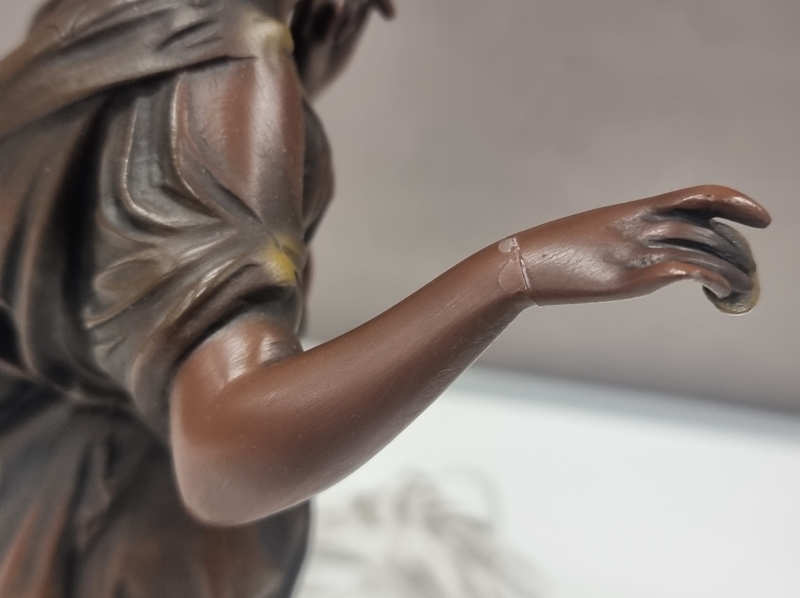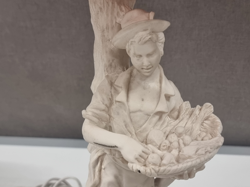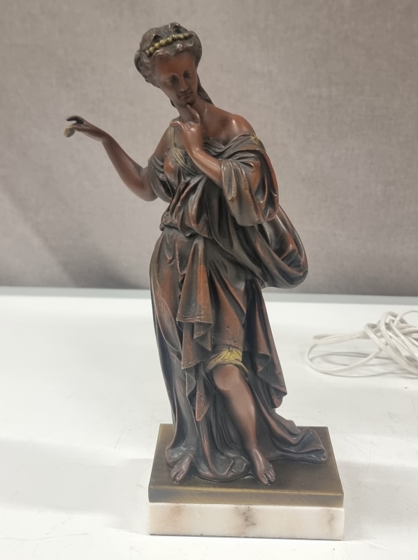Valaisimessa jälkiä, varjostimessa vikaa, patsaassa korjaus. Korkeampi 65cm
