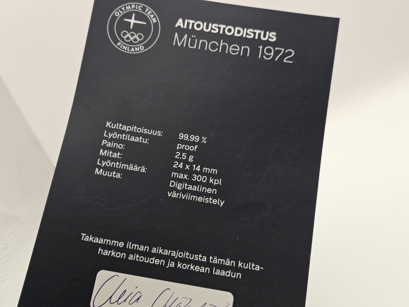 #1232 24k kultaharkko: Munchen 1972, 2,5g